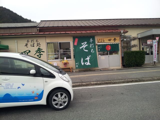 上下駅 そば処四季 オープン記念式典 EVカーシェアリング展示